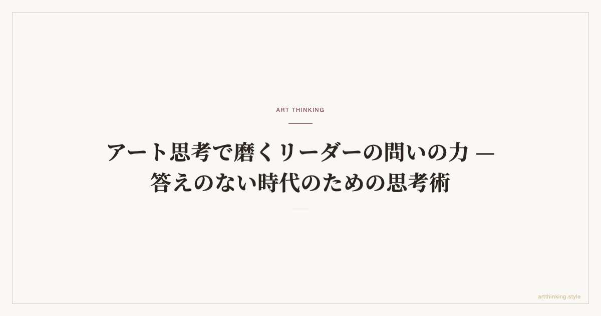 アート思考で磨くリーダーの問いの力 — 答えのない時代のための思考術
