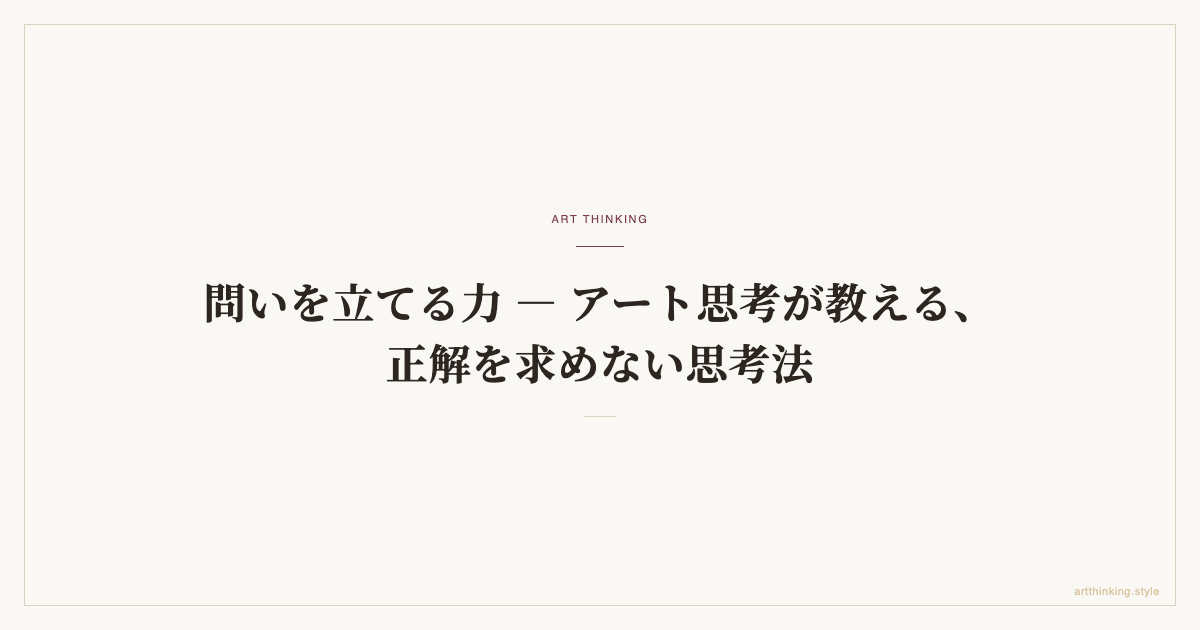 アート思考がなぜイノベーションの「上流」を変えるのか。問いの発生から価値の具現化まで、アーティストの思考プロセスをビジネスに接続する4段階フレームワークを詳解。
