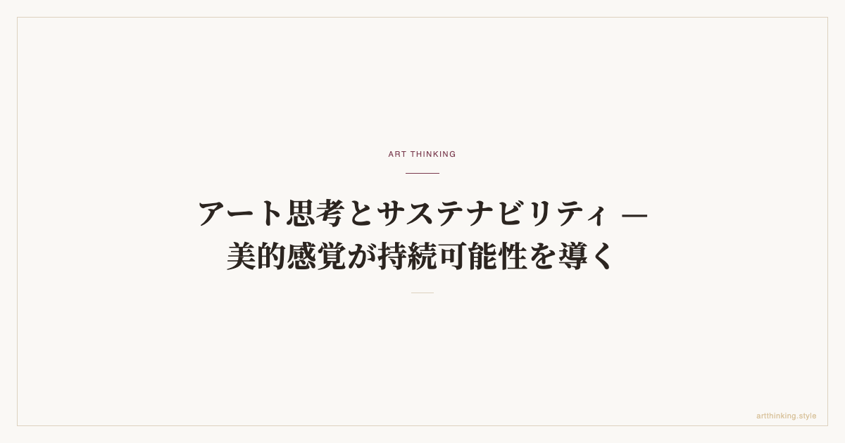 なぜサステナビリティの問いはアート思考を必要とするのか。美的感覚・長期的問い・素材への感度という3つの軸から、SDGsを超えた「問いとしてのサステナビリティ」を論じる。