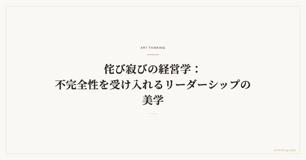 侘び寂びは美学ではなく哲学だ。不完全さを受け入れ、無常に向き合い、余白を設計する思想が、完璧主義が支配する現代のビジネスに何を問いかけるか。