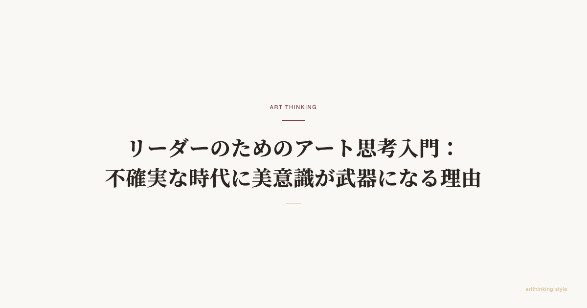 正解が存在しない経営課題に、リーダーはどう向き合うべきか。アート思考が提供する「問いの立て方」と「観察の深め方」が、現代リーダーシップの核心を更新する。