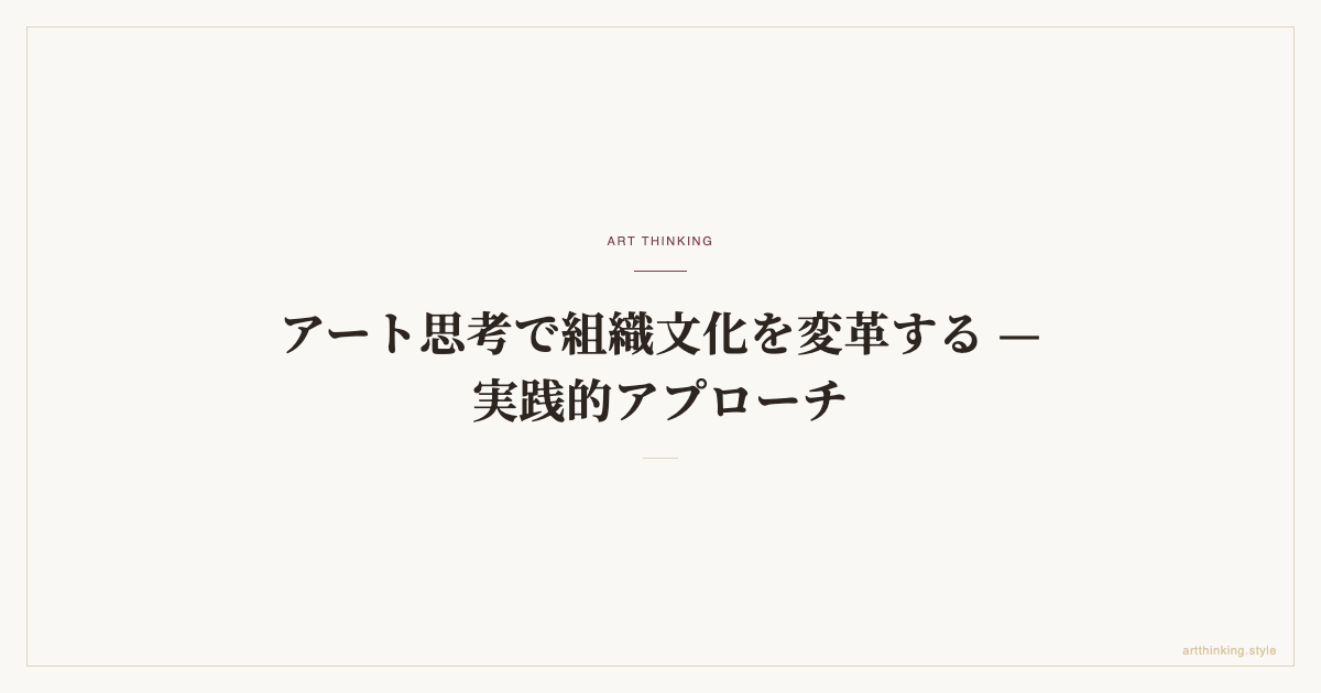 アート思考を組織文化変革に活用する実践的方法論。200回以上のワークショップ観察から導出した「問いの文化」「越境の文化」「試行の文化」3つの変革軸と、段階的な導入プロセスを詳解。